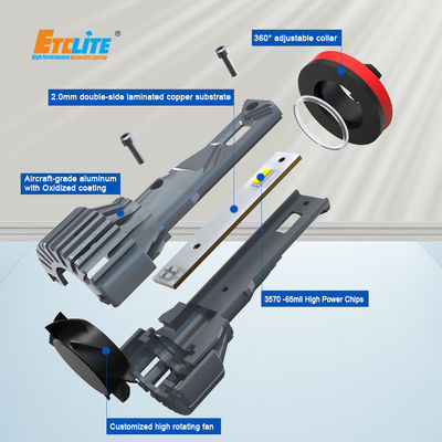 Молчаливый охлаждающий вентилятор Turbo - шарик обеспечивает вентилятор 7 000 RPM сильный Turbo крутой. Независимо от того, как хороший алюминиевый материал может быть, вентилятор шарик дизайн всегда победитель, оно turbo эффектно проконтролирует жару обеспечивающ непрерывный полный выход люменов.